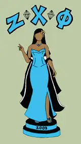 Zeta Chi Phi's colors are baby blue and black.[1] Its flower is the plumeria and its jewel is the diamond.[1] Its mascot is the black jaguar.[1] The sorority's motto is "Nothing, absolutely nothing can stop a truly committed person."[4]