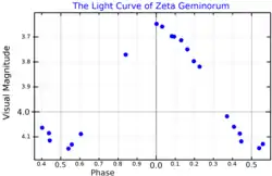 A visual band light curve for Zeta Geminorum, adapted from Kiss (1998)[30]