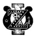 The Zeta Psi badge consists of the Greek letters ΖΨ in gold with the letters O and A engraved on the Ζ. and the arms of the Ψ engraved, with a Roman fasces upon the right and a star upon the left. The badge is set with 21 stones of pearl or jet, placed on the bars of the Ζ.[8][9] Its pledge pin is a white circle with a narrow gold outline.[9]