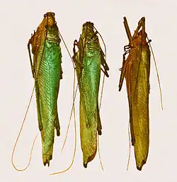 Zeuneria is a genus of African bush crickets in the subfamily Phaneropterinae and is the type genus of the tribe Zeuneriini.[1]