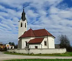 The church in Zgornja Zadobrova is dedicated to Saint Thomas (Slovene: sveti Tomaž).[1][2][7] It was mentioned in written sources in 1520 and was originally wooden. It burned and was replaced by the current built church in 1529, consecrated by Bishop Thomas Chrön in 1603.[8]