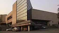 Haining International Campus (海宁国际校区) is located in the Zhejiang city of Haining.[81] Clusters of international cooperative partners and institutions reside at this campus, which opened in 2016 as part of Zhejiang University.[52][53] Student studying at the campus are also enrolled in the residential college. The first master of the college is Professor Lap-Chee Tsui.[82][83][84] The International Campus Library is a three-storey octagonal building located on the northeast shore of the central lake of the campus.[85] The campus is served by International Campus, ZJU station of Hangzhou–Haining intercity railway,[86] which opened on 28 June 2021.[87][88]