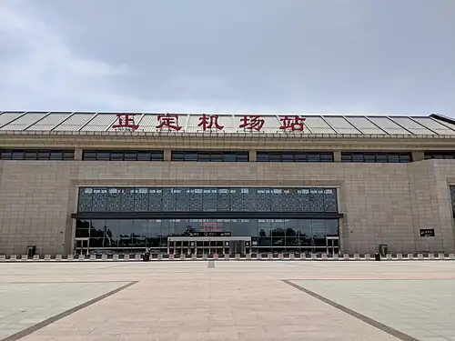 The Zhengding Airport railway station (simplified Chinese: 正定机场站; traditional Chinese: 正定機場站; pinyin: Zhèngdìng Jīchǎng Zhàn) is a station on the Beijing–Guangzhou–Shenzhen–Hong Kong high-speed railway. It is located in Xinchengpu Town in Zhengding County, Shijiazhuang, Hebei Province, near Shijiazhuang Zhengding International Airport.