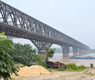 The Zhicheng Yangtze River Bridge is a road-rail truss bridge across the Yangtze River at Zhicheng, Hubei Province in central China.[2][3] The bridge is 1,742.3 metres (5,716 ft) long and carries two tracks of the Jiaozuo–Liuzhou Railway and road traffic.[2] The bridge, built from 1965 to 1971, was the third road-rail crossing on the lower 2,884 km (1,792 mi) of the Yangtze below Yibin.[1][2]