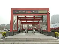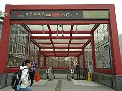 During the planning and construction phase of the station, it was named Liantang Station, which was named after the nearby village of Liantang.[1] Due to the doubling up of the name of this station and the station of the same name on Guangzhou Metro Line 9, this station was officially renamed as Zhihui Xincheng Station in early December 2021, becoming the second station in the Guangfo Line network to be renamed due to the double up names after Baiyun Dongping. The name of the new station is taken from the nearby Smart New Town Park.[5]