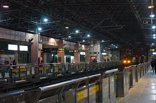 The station opened on 26 December 2000 as part of the initial section of Line 3 from Shanghai South Railway Station to Jiangwan Town,[2][3] and Line 4 service began here on the final day of 2005.[4]