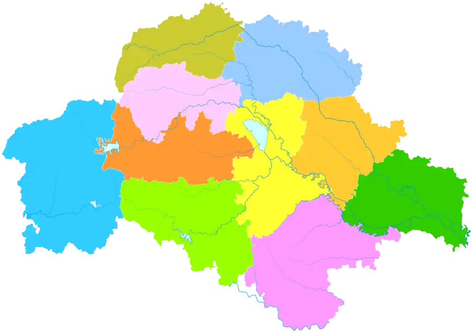 The prefecture-level city of Zhumadian administers 1 district and 9 counties.