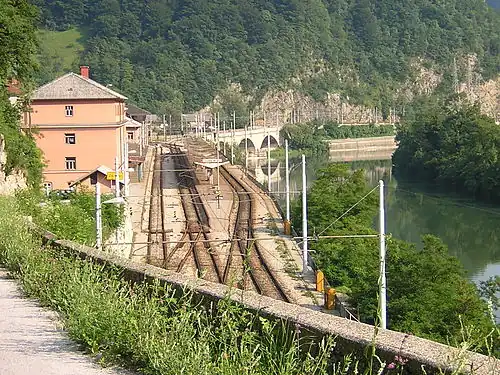 Zidani Most railway station (Slovene: Železniška postaja Zidani Most) is an important railway station and junction in Zidani Most, which is located within the municipality of Laško, Slovenia. The station lies close to the confluence of the Sava and Savinja Rivers. Its importance is because most non-direct train services linking the east with Ljubljana connect here.
