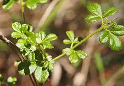 Zieria minutiflora is an erect, twiggy shrub which grows to a height of about 1 m (3 ft). The branches are hairy at first but become glabrous with age. Its leaves are composed of three leaflets with the middle leaflet 6–10.5 mm (0.2–0.4 in) long and 4–6 mm (0.16–0.24 in) wide. The leaf stalk is 1.5–2 mm (0.06–0.08 in) long. The upper surface of the leaves has scattered hairs and the lower surface is covered with soft hairs. The leaflets have a rounded or sometimes a notched end .[2][3]