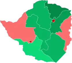 On 1 August, the Zimbabwe Electoral Commission released preliminary results which show that the ruling party ZANU–PF had won the majority of seats in parliament.[36][37] On 3 August, the Commission declared incumbent President Emmerson Mnangagwa the winner with just over 50% of the vote.[38] This was the closest that an opposition party had come to ending ZANU–PF's hold on power since 2008, when Tsvangirai led the field in the first round and forced Mugabe into a runoff (from which he subsequently withdrew due to intimidation and violence by pro-Mugabe supporters), while the MDC-T won a plurality of seats in the House of Assembly.