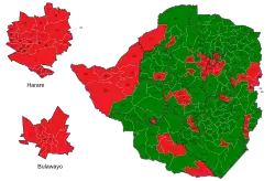 On 1 August, the opposition accused the government of rigging the vote. Just after the elections, supporters of ZANU–PF attacked houses of some MDC members.[32] In subsequent riots by MDC supporters, the army opened fire and killed three people, while three others died of their injuries the following day.[33]