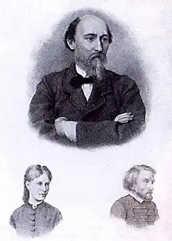 In the reference publication Nikolay Alekseevich Nekrasov. Bibliographic Index of Literature, a photograph of Zinaida Nikolaevna is mentioned, taken by the well-known Moscow photographer Friedrich Günther Möbius in the 1870s.[78] A preserved photographic portrait of Zinaida, created in the studio of the photographer of His Imperial Highness Grand Duke Nikolay Nikolaevich the Elder, a member of Karl Bergamasco, has also survived. It depicts "a charming, modestly dressed young woman with fluffy hair gathered in a hairnet, with a soft oval face and kind eyes".[79] On May 30, 1872, the Nekrasov couple gifted this portrait to Alexander Pleshcheev— the son of their friend, the poet Aleksei Pleshcheev —along with a paired portrait of the poet himself. This was attested by Pleshcheev the Younger: "Zinaida, Zinaida Nikolaevna, also gave me her portrait on the same day. They had just been photographed by Bergamasco".[80][79] According to contemporaries, Nikolay Nekrasov cherished this portrait of his wife. Zinaida Nikolaevna later allowed it to be rephotographed but forbade its publication in print until after her death.[79] In April 1878, the Russian engraver, creator of an entire gallery of images of Russian cultural figures of his time, Ivan Pozhalostin, made a "remark" in the lower margin of one of the prints of an engraving of Nekrasov based on a portrait by the realist artist Ivan Kramskoi. There, Pozhalostin also included a portrait of the art critic and publicist Vissarion Belinsky.[81][79] The Saratov photographer Sergei Grishnyakov rephotographed Karl Bergamasco's photograph for an oval frame in the 1870s.[82]