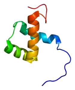 ZEB1 (previously known as TCF8) encodes a zinc finger and homeodomain transcription factor that represses T-lymphocyte-specific IL2 gene expression by binding to a negative regulatory domain 100 nucleotides 5-prime of the IL2 transcription start site.[7][6] ZEB1 and its mammalian paralog ZEB2 belongs to the Zeb family within the ZF (zinc finger) class of homeodomain transcription factors. ZEB1 protein has seven zinc fingers and one homeodomain.[8] The structure of the homeodomain is shown on the right.
