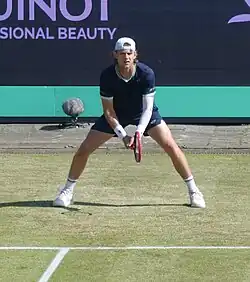 In the beginning of the grass court season he entered the main draw of the Rosmalen Open as a lucky loser and defeated local wildcard Tim van Rijthoven ,[ 46] before losing to top seed Alex de Minaur in the second round.[ 47] He also entered the main draw at the Wimbledon after qualifying but lost to Arthur Cazaux in five sets with a super tiebreaker in the fifth.[ 48] As a result he reached the top 75 in the singles rankings on 15 July 2024.[ 1]