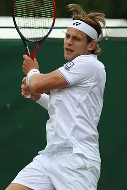 Ranked No. 207, he won the Ilkley Trophy as a qualifier, defeating lucky loser Alexei Popyrin in the semifinals[ 15] [ 16] [ 17] [ 18] and Jack Sock in the final.[ 19] As a result, he received a wildcard into Wimbledon , where he made his Grand Slam debut.[ 20] He also climbed more than 60 positions up the rankings to a new career-high of world No. 146 on 20 June 2022.[ 1]