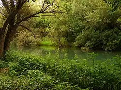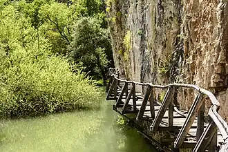 Part of the river course near Lukovit is situated in the Iskar–Panega Geopark, created to foster local tourism and to preserve the geologic and geomorphologic features of the surrounding karst landscape, with several tourist tracks. There are over 700 caves in the region, including the renown Prohodna on the banks of the Iskar, a few kilometers west of the Zlatna Panega.[6][7]