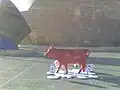 View of Sueñame cow, in front of the Monumento a la Raza -