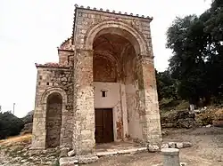Located some 5 km west of the village, the modern church was originally the narthex or lite of the katholikon church of a monastery.[1] The monastery is otherwise unidentified and is not mentioned in any source or inscription, but the name "Monastery of Sterna" may be applicable to it. On the other hand, it is possible that this monastery is the same as the Monastery to the Theometor mentioned in the hagiography of Meletius the Younger, in which case it dates to the end of the 11th century. On stylistic grounds, it has been dated to the late 12th century.[1][2]