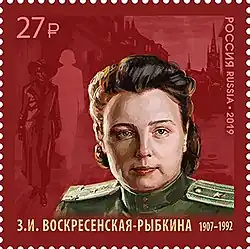 Zoya Ivanovna Voskresenskaya (Russian: Зоя Ивановна Воскресенская; in marriage – Rybkina, Рыбкина; 28 April 1907 – 8 January 1992) was a Soviet diplomat, NKVD foreign office secret agent and, in the 1960s and 70s, a popular author of books for children. A USSR State Prize laureate (1968), Voskresenskaya was best known for her novels Skvoz Ledyanuyu Mglu (Through Icy Haze, 1962) and Serdtse Materi (A Mother's Heart, 1965). Between 1962 and 1980 more than 21 million of her books were sold in the USSR.