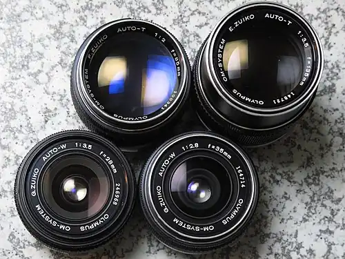 Zuiko (Japanese: ズイコー or 瑞光) is a brand of optical lenses[1] made by Olympus Corporation that was used up to and into the Four Thirds system era. The name Zuiko (瑞光) means 'Holy Light', using a character from the Mizuho Optic Research Laboratory (瑞穂光学研究所), where the lens was developed, and a character from Takachiho Corporation (高千穂製作所), which would eventually become the Olympus Corporation.[2][3]