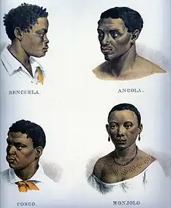 "Zumbi" is a song by Brazilian samba-rock artist Jorge Ben.[2] It appears on his 1974 album, A Tábua de Esmeralda.[3] Its title refers to Brazilian slave settlement leader Zumbi dos Palmares. The song's lyrics describe the scene of a slave auction, ending with hopeful speculation about what will happen when Zumbi arrives. The refrain "Angola, Congo, Benguela, Monjolo, Cabinda, Mina, Quiloa, Rebolla" evokes the African origins of the slaves up for sale in the song.[4][5] This vocal by Ben accompanied only by percussion is interrupted by a short, rising guitar chord, which announces the climax of the song, with the reintroduction of the sound mass of the brass and the singing taking on more passionate and dramatic contours, alternating with figurative intonations, in the final execution of the chorus, interspersed with apostrophes ("my people!") and some improvised vocals.[6]