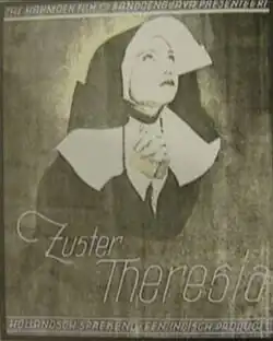 The film was the last to be produced by Halimoen Film.[3] It was a sound film, but the sound was of low quality;[4] the first talkie in the Dutch East Indies, Karnadi Anemer Bangkong, had only been released in 1930.[5] The film's poster emphasised its Dutchness and depicted only Flora, as Sister Theresia, praying, with text above and below the image. Ade Irwansyah, compiling a list of the best Indonesian film posters for Tabloid Bintang, selected the poster for Zuster Theresia as the twentieth-best of all time, noting that its simplicity strengthened the image of a nun praying.[6]
