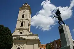 The town prospered until the First World War, when it was occupied and devastated by the Austro-Hungarian army and had its population halved (from cca. 14,000 to 7,000) on the orders of Kasimir von Lütgendorf, despite the fact that the Royal Serbian Army evacuated the town without resistance. Lütgendorf later ordered three of his own soldiers to be publicly executed by bayonet in the town square for drunkenly discharging their rifles despite orders from his superior Karl Tersztyánszky von Nádas to stop, leading to him being court-martialed and convicted for murder after the war in 1920.[5] World War I is also remembered for the battle on nearby Cer mountain where the Serbian army under general Stepa Stepanović won an early victory against Austria-Hungary in August 1914, the first Allied victory in the war. After the war, Šabac was decorated with the French War Cross with Palm (1920), the Czechoslovak War Cross (1925), and the Order of the Karađorđe's Star with Swords (1934).
